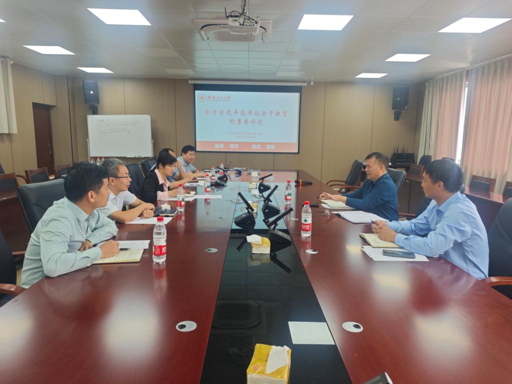 会议开始,学院党委副书记、院长董明刚同志领学了习近平总书记关于加快建设教育强国重要论述的科学内涵与精神。董明刚同志指出学院党委要带领全院教职工,深入贯彻落实习近平总书记的要求,学院发展要聚焦内涵建设,以学科建设为龙头,紧盯学科前沿与区域产业需求,优化专业布局。随后学院党委成员结合工作依次就如何贯彻落实习近平总书记关于教育的重要论述谈了体会。