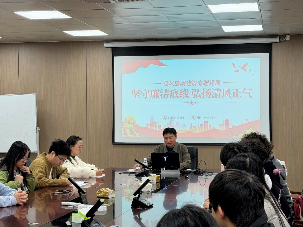 为切实增强本科生党员纪律规矩观念,2025年12月10日中午,beat365手机版官网入口董明刚院长在07424为学院本科生第一党支部全体党员讲授了一堂深刻生动的廉政专题党课。