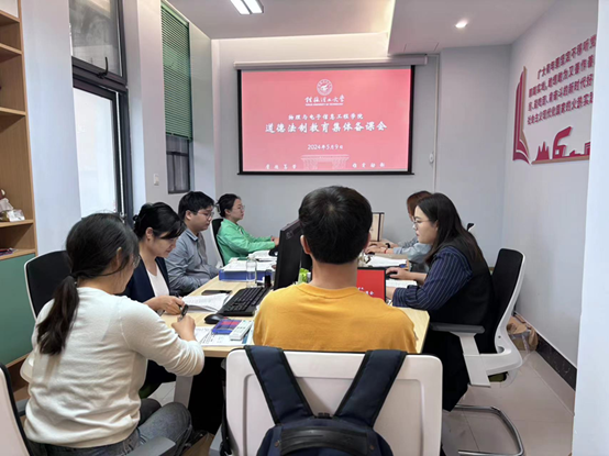 法安天下,德润人心。为进一步增强大学生的道德法制意识,接受法制教育,自觉遵纪守法,同时实现教师间优势互补和资源共享,提升辅导员主题班会教育教学质量,发挥集体智慧,创新教学思路,5月9日下午,物电学院全体专兼职辅导员于嘉园“一站式”学生社区活动会议室召开道德法制教育集体备课会。