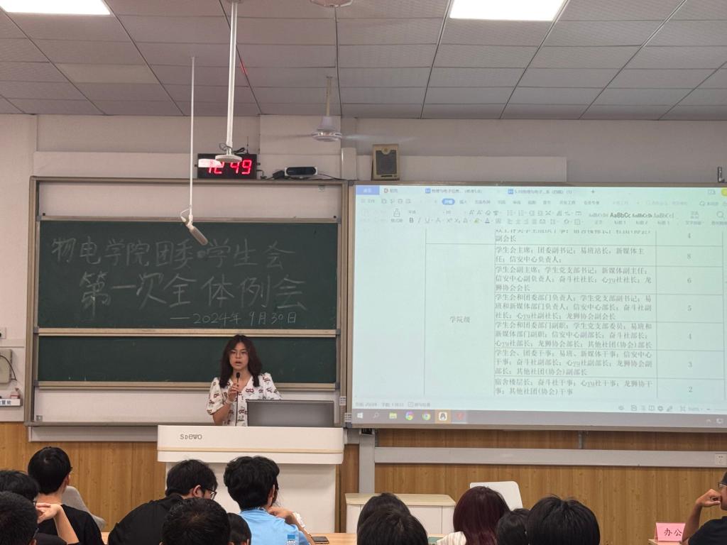 2024年9月10日,学院团委在雁山校区07120教室成功召开了秋季学期的专题会议。本次会议由学院兼职辅导员李琪老师主持,学院团委书记姚倩老师、学院团委副书记王发老师出席会议,团委全体成员、学生会主席团成员以及各学生社团负责人等共计70余人参加了此次会议。