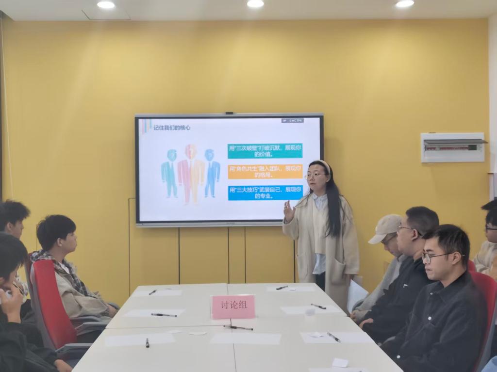 11月13日上午,我院在明园“一站式”职业选择能力体验中心成功举办“破壁·共生:群面赋能”就业指导活动。活动通过“理论+实战+复盘”的创新模式,为同学们提供了沉浸式面试能力提升平台。