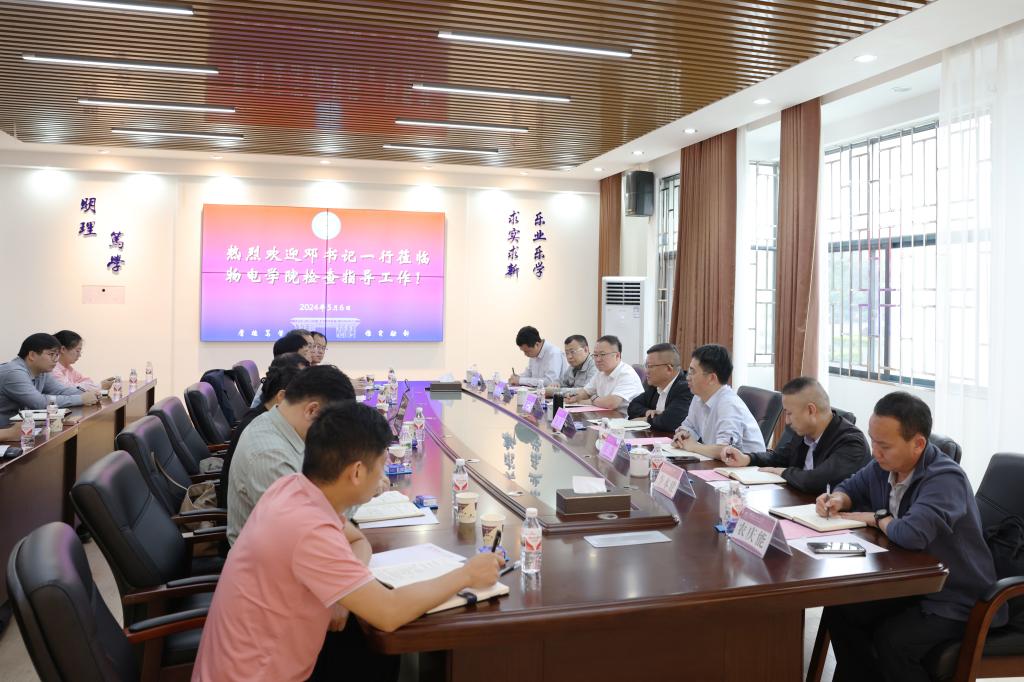 在调研座谈会上,邓军认真听取了学院主要负责人关于学院基本情况、党建和业务工作进展以及工作计划等方面情况的汇报,对物电学院领导班子、全体教职工自学院成立以来在推动学院发展等方面取得的成绩给予充分肯定。