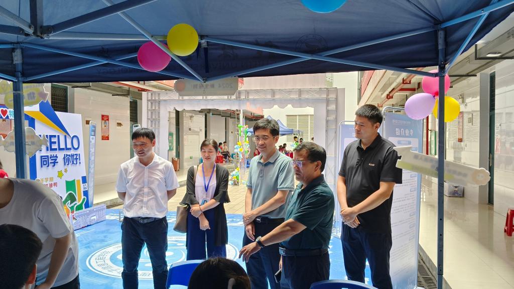 王磊副校长认真听取了学院迎新工作的汇报,在迎新生报到处详细了解入校报到流程、入住宿舍安排以及新生注册情况,并与学生志愿者亲切交谈,对大家精细高效、平稳有序开展的迎新工作给予充分肯定。