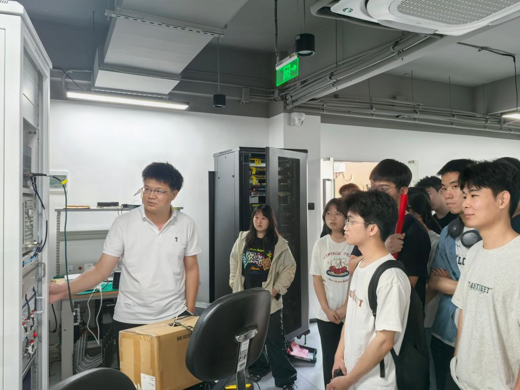 在桂林移远通信技术有限公司,师生一行参观了企业5G通信模组研发实验室、办公及企业文化场所。技术负责人详细讲解了通信模组的研发流程、生产测试标准及市场应用场景,并现场演示了物联网终端设备的联网调试过程,随后,师生走进桂林海威科技股份有限公司的LED智能照明展厅与光学检测中心,企业负责人结合智慧城市案例,展示了从产品设计、生产到质量管控的全链条运作模式。两家企业负责人还分别介绍了2025年校园招聘计划,涵盖硬件工程师、测试工程师、产品经理、人力资源管理等岗位,并重点提及“专业基础扎实”“实践创新能力强”等用人要求。同学们还就职业能力提升、岗位适配度、晋升发展等问题与企业人员展开热烈交流。